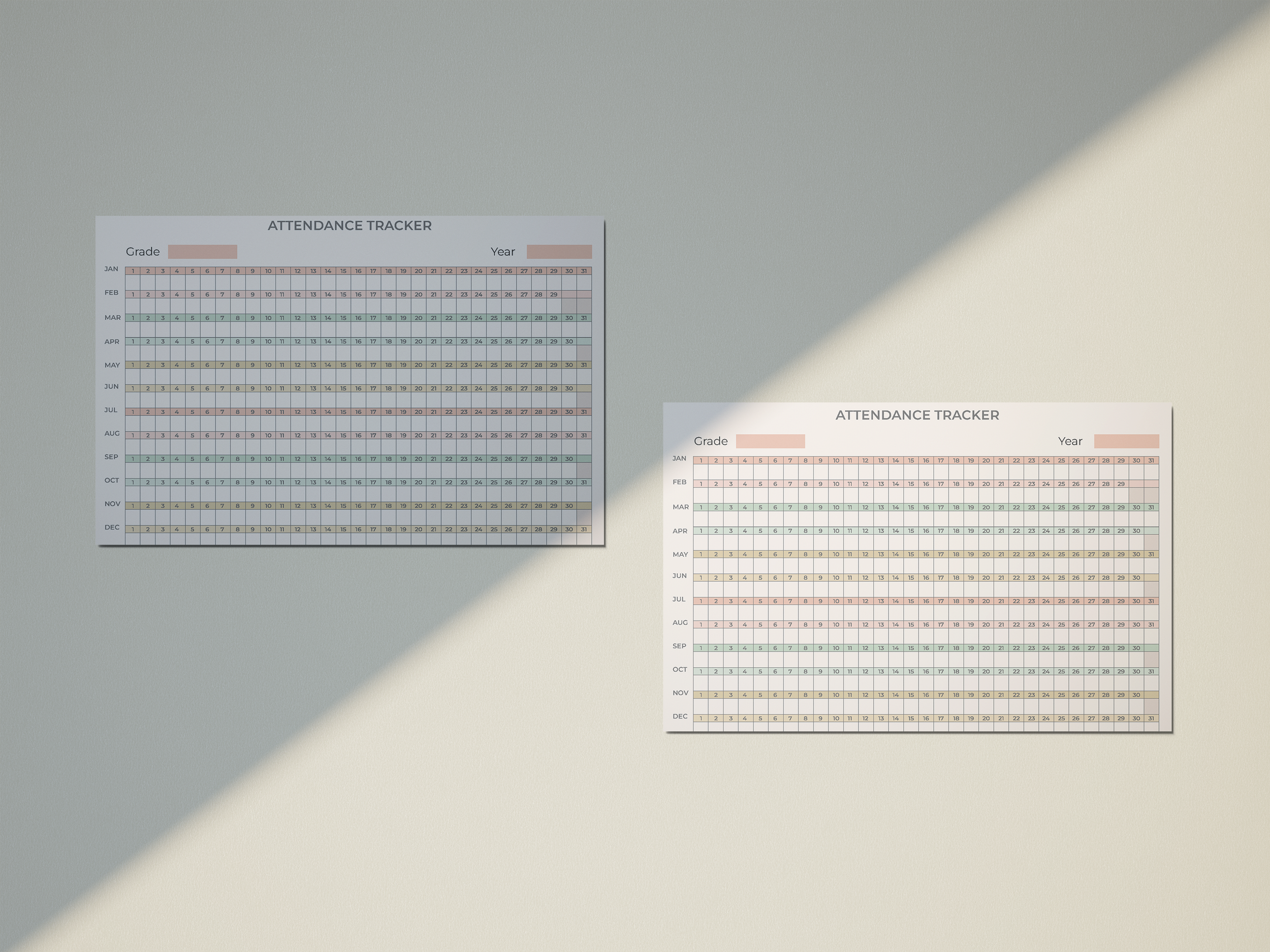 Attendance tracking is an important part of homeschooling and, depending on your state, it may even be a requirement. This attendance tracker is a simple yet effective tool to help you stay organized while giving you a clear, bird's-eye view of your child's attendance throughout the year. It’s designed to make your record-keeping easy and stress-free so you can focus on what matters most—your child’s education!